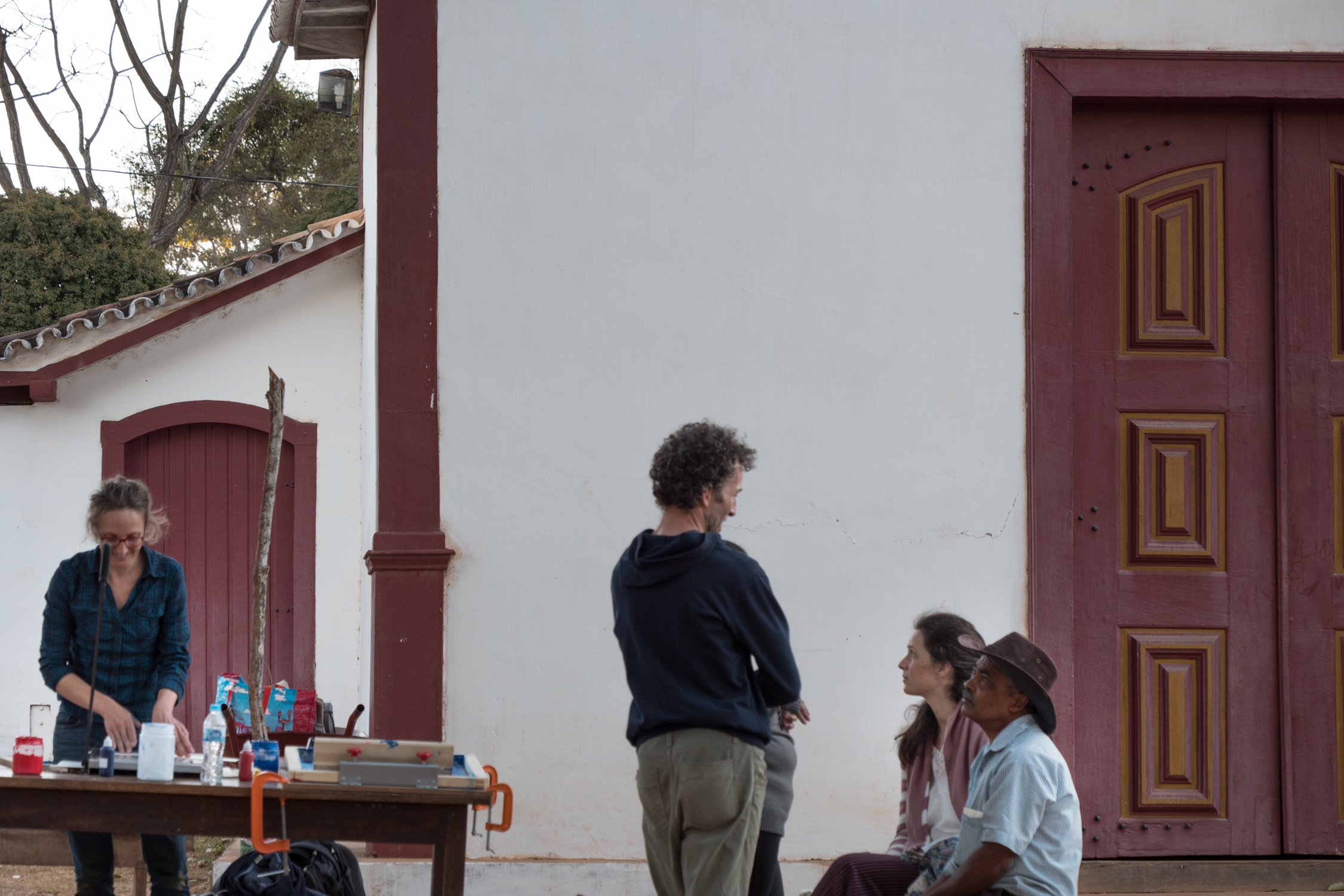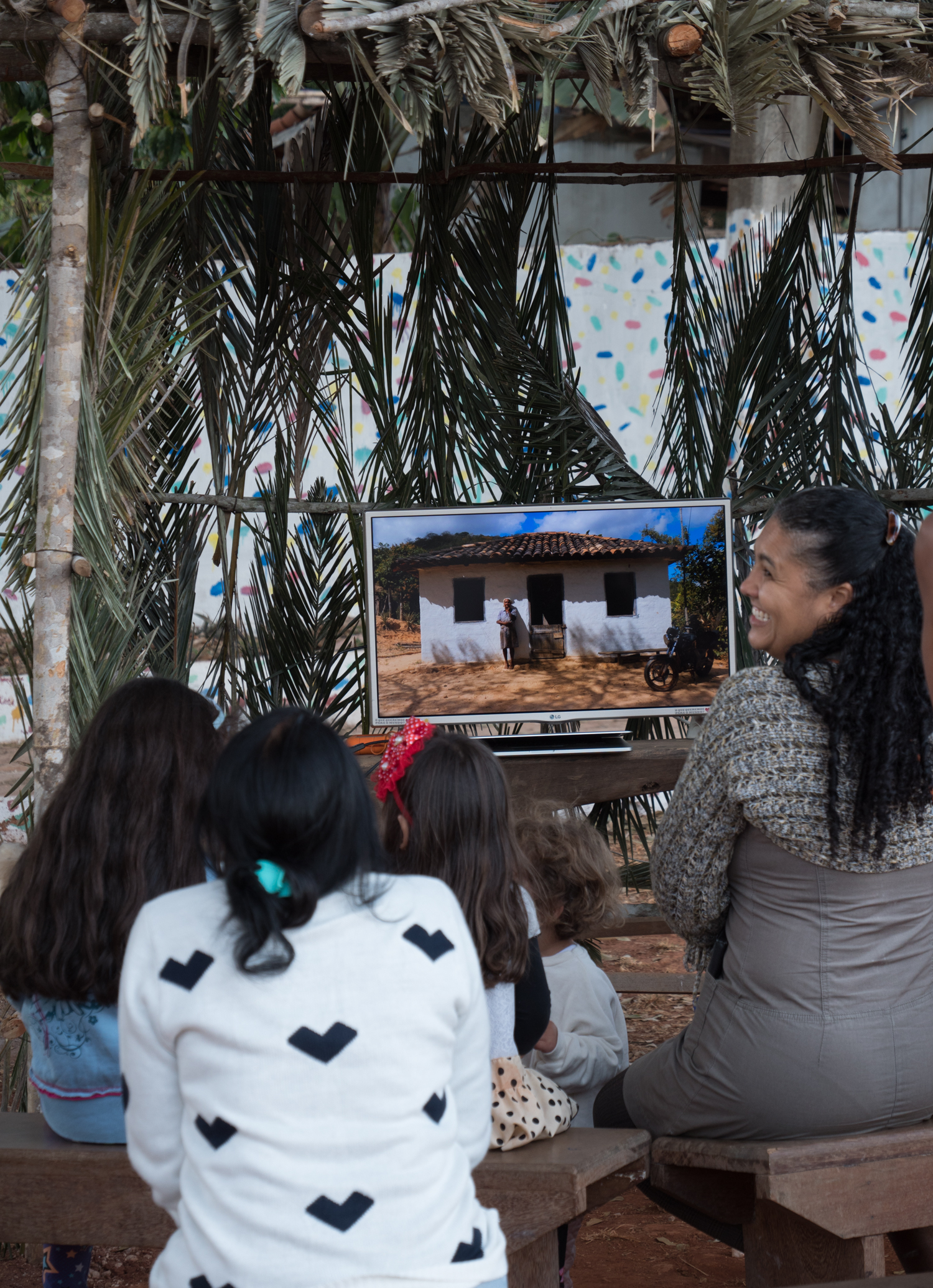 - ranchinho (construção) de madeira e palha de palma, bancada e televisão para assistir filmes;